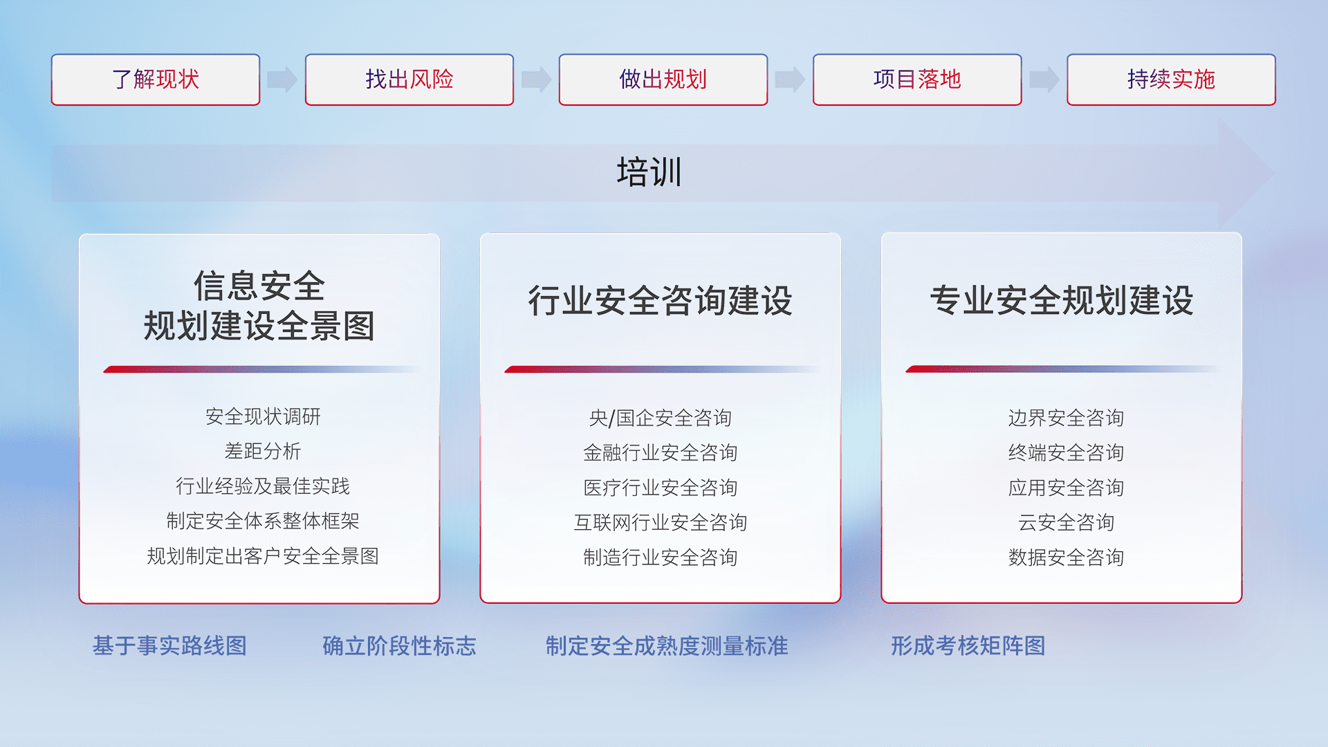 通过专业的法律咨询解读、、、、合规架构体现、、、差异化解决方案、、、、测试实施支持等服务,,,,为客户量身打造等保合规体系。。。